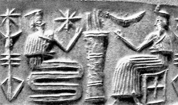 * В библиотеке Ашшурбанапала найден цилиндр с изображением, на котором в центре находилось дерево, по одну сторону его – мужская фигура, по другую – женская; сзади женщины извивается подымающаяся с земли змея; мужчина и женщина протягивают руки к висящим на дереве плодам (библейская история змея и яблока).