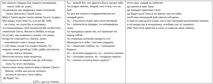 Молитва Эхнатона в разных переводах и Отче наш