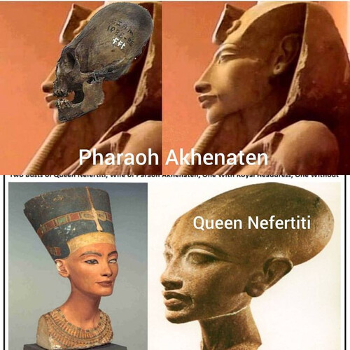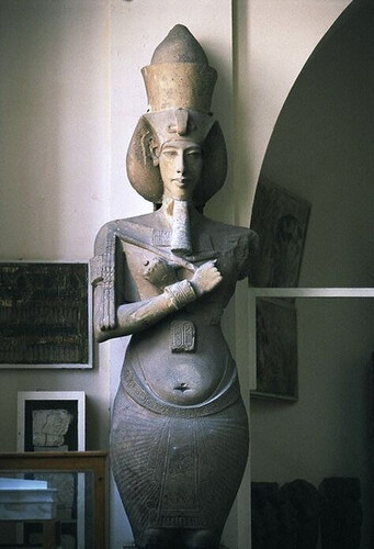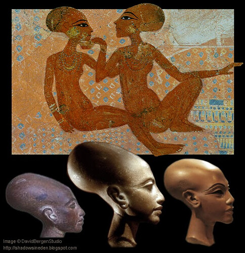 Инсайдер вообще утверждал, что Христос приходил во времена расцвета Египта, а это 10-15вв. до н.э. А в тот период произошло одно из самых странных событий Египта - появление Эхнатона с его культом единого бога. Фараон Эхнатон отверг многобожие, построил новую столицу Амарну и создал культ бога Атона. После его смерти его столица была покинута, а имя его стёрто. Но кое-что осталось от того периода и заново открыто в 19в. н.э. (спустя 3300 лет после убийства Эхнатона). Например, у Эхнатона была необычная внешность и врачи считают, что это следствие огромного количества болезней, но однако несмотря на широкий таз и узкие плечи он был "половой гигант" и наделал кучу детей своим многочисленным женщинам.