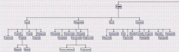 - От Хама египтяне, ливийцы, эфиопы, ханаане, иевусеи (которые построили Иерусалим в 3000 до н.э.)